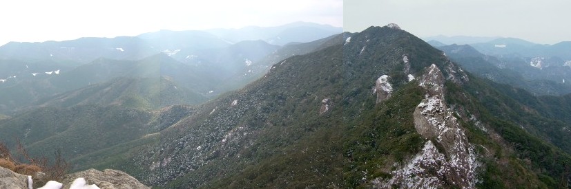 東岩峰と反対側。三角点が向かいの山のピークにある。