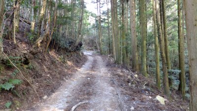 ここ数日は、寒さがやわらいでいる。歩き出しは寒さを感じないのだが、山は方向によって風のあたり方が変わり、とても寒くなったりする。汗が出るまでちょっと厚着のまま林道を歩いていく。舗装はされていないが、車がしっかり踏みしめたしっかりした道であり、人の跡が感じ取れる。