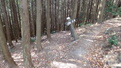 植林を駆け上がると、三角点分岐から上見坂に向かう標識のところに出てくる。