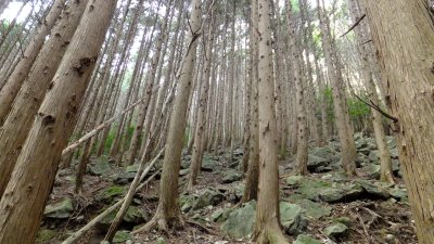 道の左右は自然林から植林帯に変わっていく。
