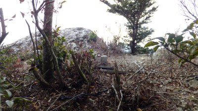 久しぶりの白嶽三角点への道、シダの葉が茂り、道らしき溝も荒れていた。やがて植林地帯となり、少しずつ標高を稼いでいく登りになる。暑くなり、半袖となる。やがて鞍部に到着するが、ここにくると北西の風が吹いていて、一気に体を冷やす。また慌てて一枚を羽織る。対馬の冬の山歩きは、尾根に出た途端、寒さが一変することがよくある。静かな鞍部でゆっくり息を吸って、さあ、右に折れて、白嶽三角点への稜線だ。