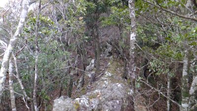 ちょっとした藪道と未知の道歩き。この楽しさは毎年冬のみの密かな楽しみである。しかし、楽しくても未知のルートは毎年少しずつ果たしていくようにしている。楽しみは一気に使わず、少しずつ。これが島で長く山登りを続けるための密かな鉄則でもある。