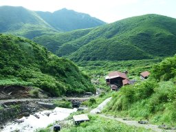 夏の久住の楽しみ方は,早出に限る。午後ともなれば,日光を遮るものがない登山道は暑さが身にしみるので涼しい朝のうちにたくさん歩きたい。で,朝早く(夜中?)家を出発する。予定では5時に着いて,即登山開始のはずだったが,大曲に5時過ぎに着くと,いやはや眠い・・・ 山に登たいという意欲と睡眠をとれという本能・・・やはり本能が勝ってしばし仮眠。6時半の出発となった。