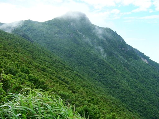 大船山が見えてきた。雲がかかっては消え,かかっては消えしている。