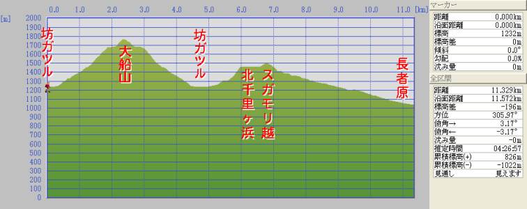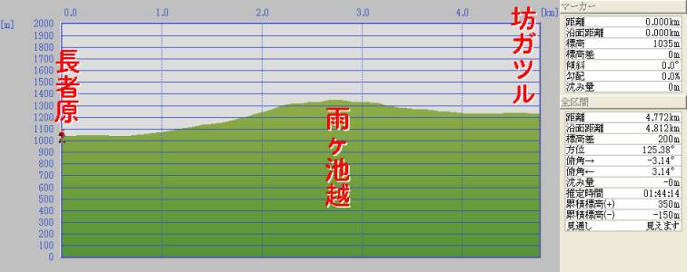 | 長者原〜65分〜雨が池越〜35分〜坊ガツル(泊) 断面図 |