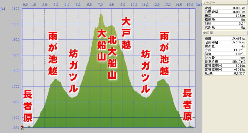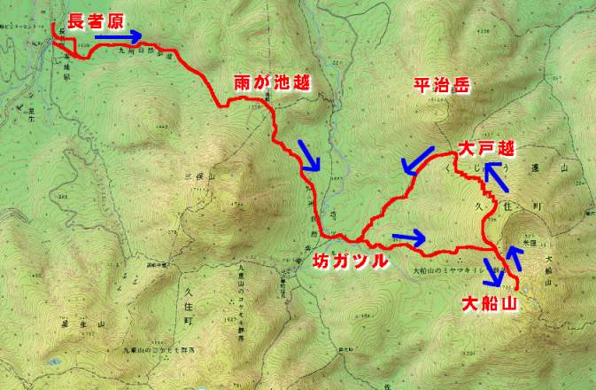 長者原〜雨が池越〜坊ガツル〜大船山〜北大船山〜大戸越〜坊ガツル〜雨が池越〜長者原