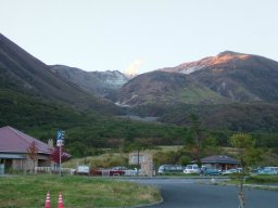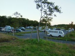 長者原に朝が来た。駐車場にも泊まりの車が結構ある。