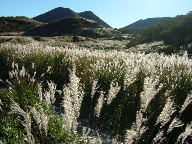 雨が池を過ぎると,三俣山の姿が威風堂々。こちらにせまってくる。そして,平治岳,大船山が姿を見せる。坊ガツルもまさにススキがまっさかり,その黄金の穂並みはナウシカでも飛んでくるのではと思わせる。思わず感嘆の声を上げてしまう。