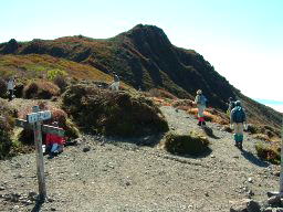 坊ガツルにはいくつかのテントがあった。ここでキャンプもいいだろうなあ,と思いながら,大船山へ。思ったより,狭い登山道だ。ミヤマキリシマの頃はこの道を人がごったがえすのか・・・私は一生ミヤマキリシマには会えないかもと思った。