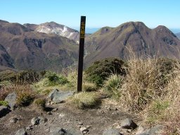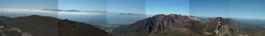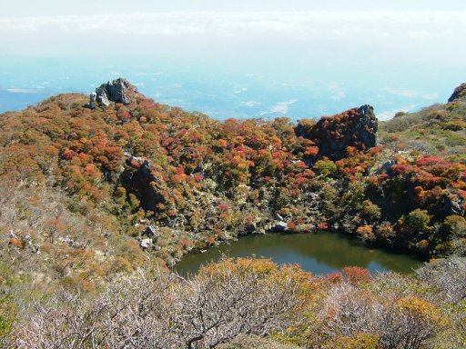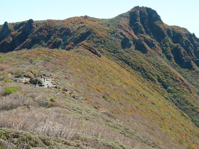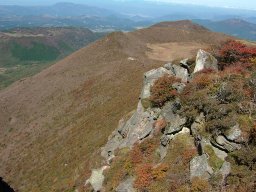 そして,段原へ。おっと風が強い。休もうかと思ったがそのまま,大船山を目指す。紅葉はいまいちのようだ。人の話に寄れば台風でかなり葉も落とされてしまったらしい。今年は花も紅葉もいまいちの年だったなあ。岩をよじ登りながら山頂へ。山頂は多くの方が休んでおられた。私もゆっくり腰を落ち着けて,眺めに見とれる。横でおじさんが興奮しながら電話している。