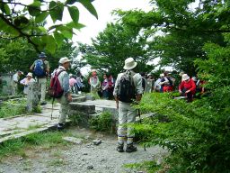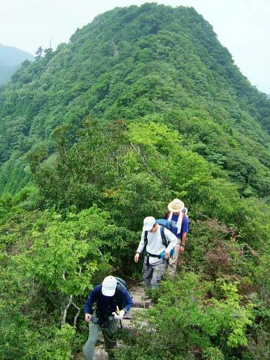 西野越から金泉寺へ。金泉寺の水道で顔を洗うと,その冷たさに生き返る気がした。岩に腰を下ろし,いろいろ話した。山馬鹿さんの山への情熱に耳を傾ける。さりげなく詳しく,さりげなくすごい。にこやかなおいちゃんだが,なかなかの山好きさんである。