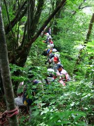 今日は,福岡から,肉まんさん,コヨーテさん,ごえもんさんが,長崎からは山馬鹿さんがこられてのオオキツネノカミソリ鑑賞登山をすることになった。