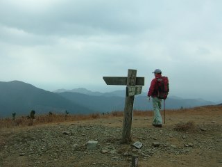有明山山頂は、冷たい風が強い。