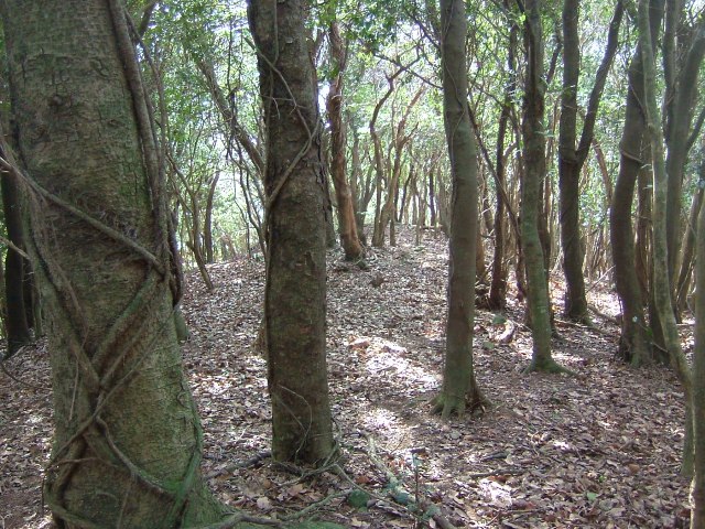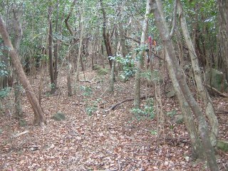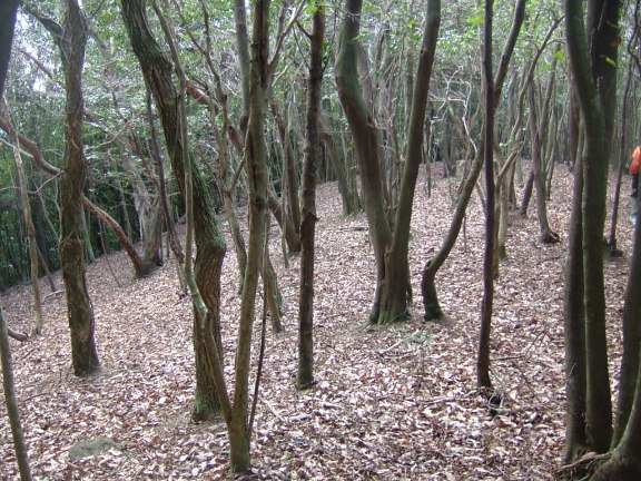 もうすぐ藪かと思いきや、心地よい木立の自然林が続く。