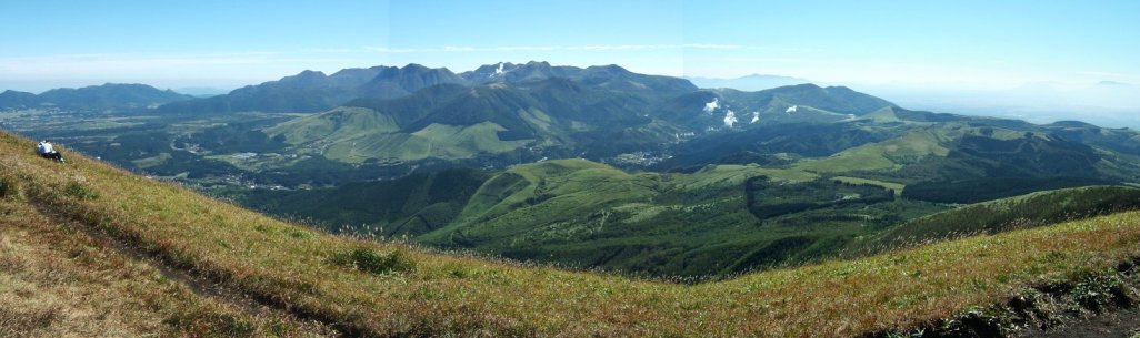 うぉぉぉおお! 息子と二人で声を上げる。突然目の前にあらわれた九重連山。