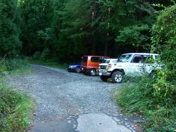 はげの湯先の林道に7〜8台ほど駐車できる。未舗装の林道先は,崩壊しており登山口までは車で行けない。 |