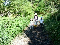 と話しながら歩く。2年前は足がとどかなくて,だっこして上げていた道も,ぐんぐんと登っていく。