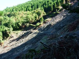 林道を歩き,地滑りの後を速やかにわたる。ちょっと緊張した。