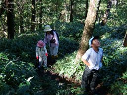 樹林帯を抜け,笹道に入る。子ども達のペースは速い。