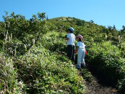 実は息子も2年前は,病弱だった。詳しくは割愛するが,要するに病気で肺で酸素を十分に取り込めていなかった。酸素を十分摂取できないということは,山での登りは彼にとってとてもつらい運動だった。2年前の涌蓋山では,あきらめずに登るものの息子の目にはずっと涙がたまっていた。「山登りは小さい山にしよう。」それが彼の口癖だった。でも,今日はその息子もぐんぐん登っていく。もちろん笑顔いっぱいだ。元気に駆け上がれる自分が誇らしかったに違いない。