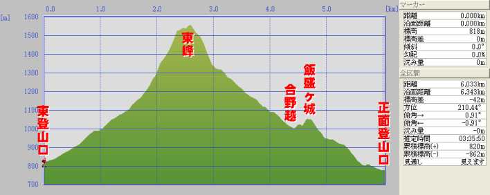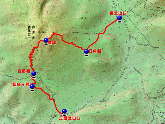 東登山口〜日向越〜東峰〜マタエ〜合野越〜飯盛ヶ城〜正面登山口