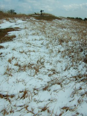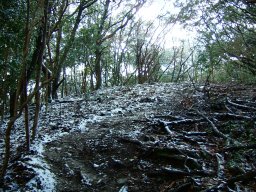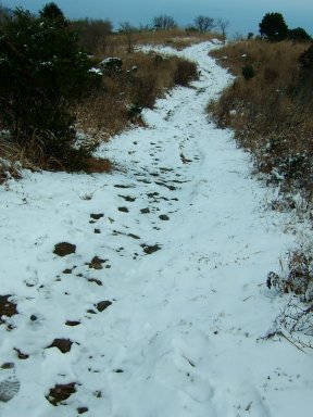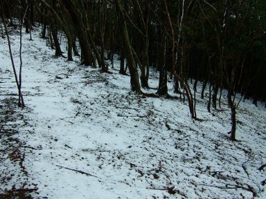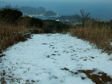 山頂付近は風が強いので雪は飛ばされていて、残りは少しである。