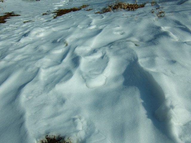 雪の風紋もささやかであるが、その美しさにしばし見とれる至福の時間だった。